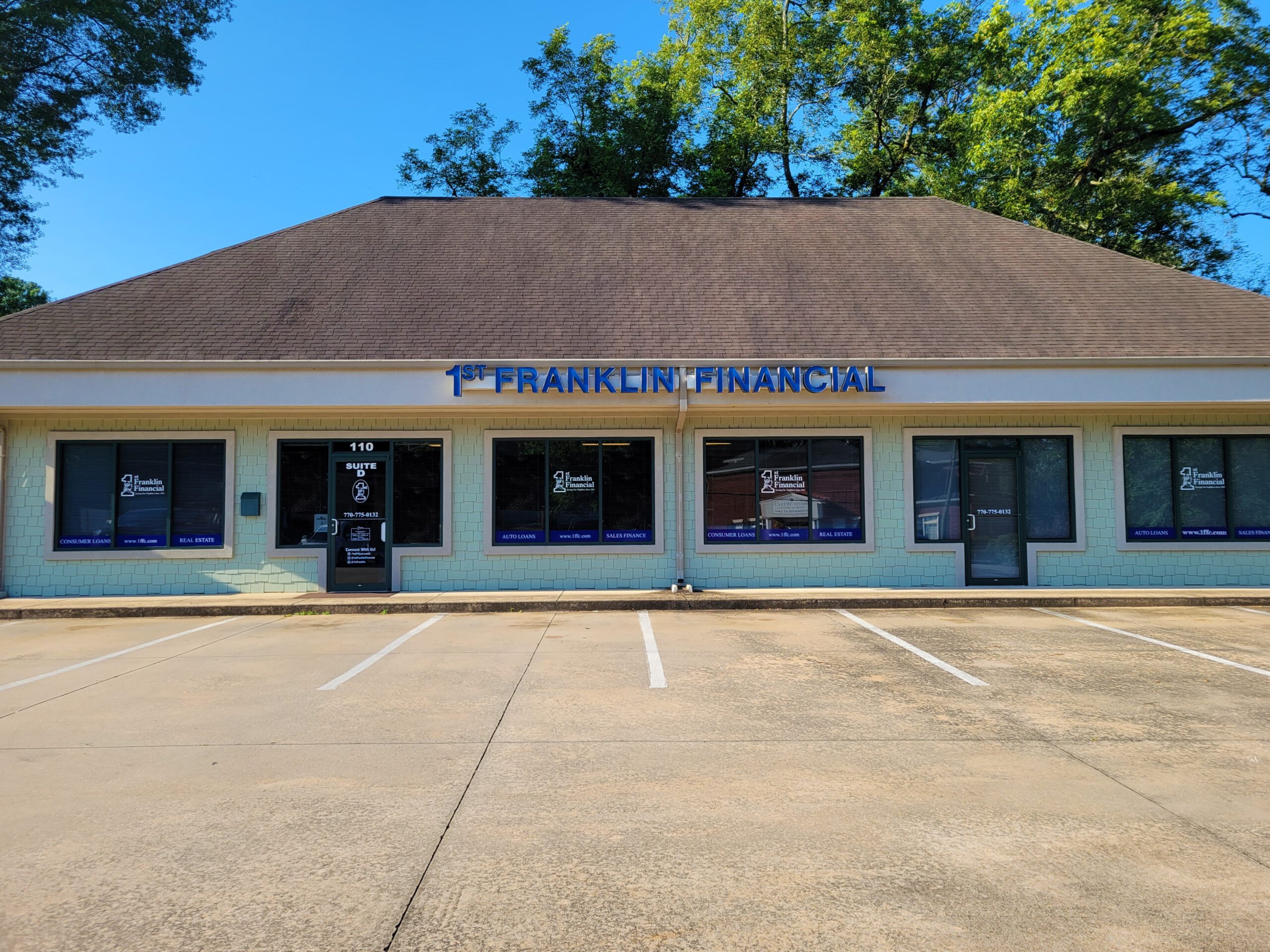 With over 370 1st Franklin offices across the southeast, were not far from home, and we have been offering loans to our neighbors for over 80 years. Call us today, and find out about our quick approvals, fixed payments and fixed rates.