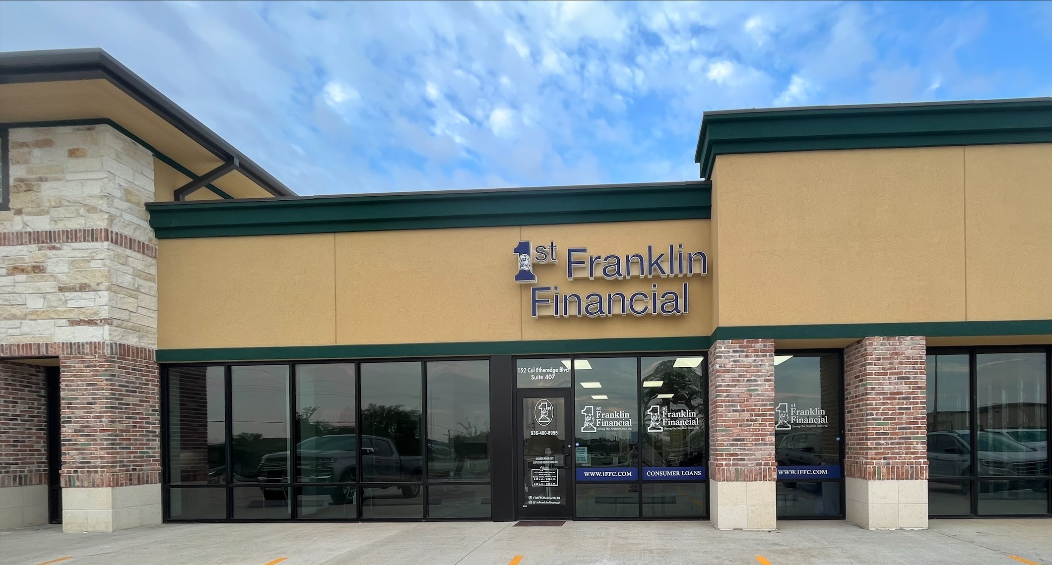 You can easily find our branch in a strip mall behind Hobby Lobby and next to Rodeo Mexican Bar and Grill. We have a wheelchair-accessible walkway and seating available to accommodate our Huntsville customers. For your convenience, there is a large parking lot right outside our branch. You may park anywhere you like and come on in. Appointments are not necessary to apply for a loan or simply stop by to ask questions at 1st Franklin Financial in Huntsville.